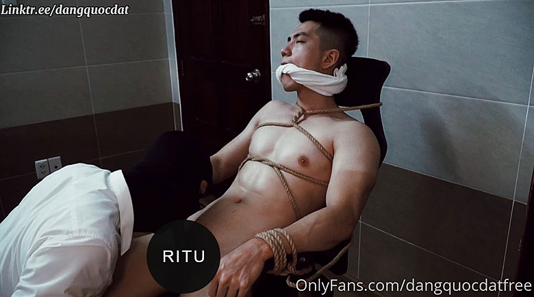 Dang Quoc Dat去找工作,被老板下了药,绑在椅子上折磨他的大diǎo喷shè。