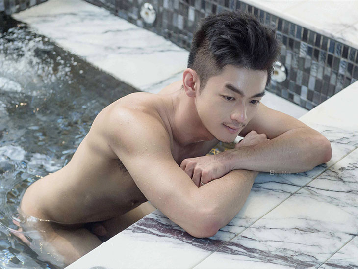 趴在大理石浴缸上的他 背部线条不断延伸到股沟