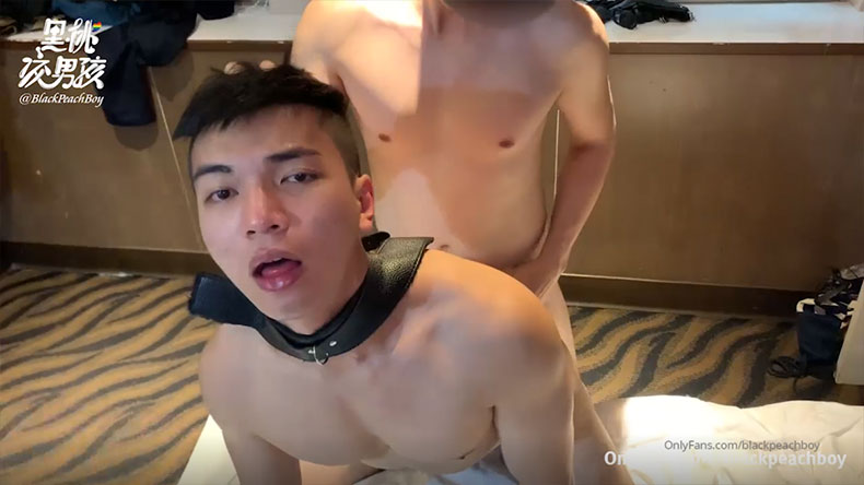 嘴里吃着,菊花插着,全程无套被两个肌肉攻双龙猛干,最后一起喷shè到黑桃身体上。